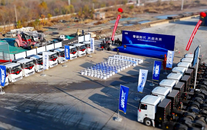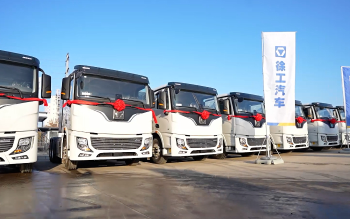 战鼓催征,鸣笛起航,近日 蓝莓TV,百台徐工新能源纯电动牵引车交付仪式在河北沧州顺利举办,一排排徐工新能源牵引车整齐列阵,以昂扬之姿奔向沧州砂石运输“第一线”,为沧州区域脱碳进程写下生动注脚。