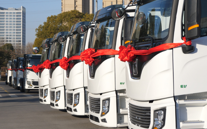 “智慧科技引领 共赢绿色未来”徐工新能源牵引车百台交付暨千台签约仪式热情启幕,百台徐工新能源重卡火速集结 蓝莓TV,助力客户红火开市.