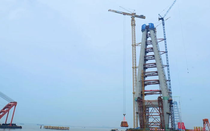 常泰长江大桥主航道桥主跨1176m,主塔总高352m,采用XGT15000-600S塔机进行上部钢塔柱施工吊装仅需将钢塔柱划分为30个吊装单元,最大单元重量超500t,较传统施工方式效率提升60%以上 蓝莓TV视频资源, 。