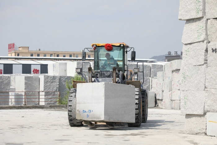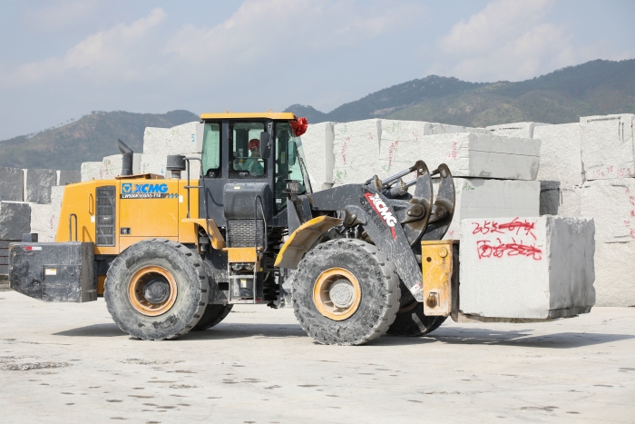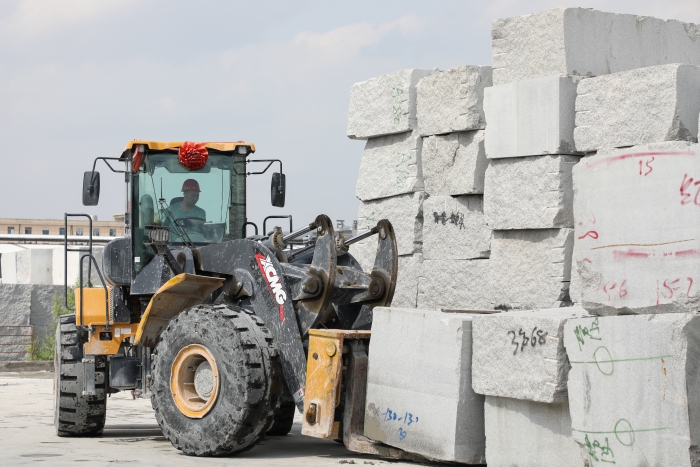 高档花岗岩石材,以其优美的外观,坚硬的质地,一直是公共设施外立面装饰的首选,客户用的这台徐工LW500KV(GIV)-T18石材叉装机已在石材加工厂使用两年 蓝莓TV,“相比过去用的车,操控轻松方便,视野很开阔,在复杂工作环境下也非常稳定可靠,干活效率高,”驾驶员对徐工石材叉装机赞赏有加。