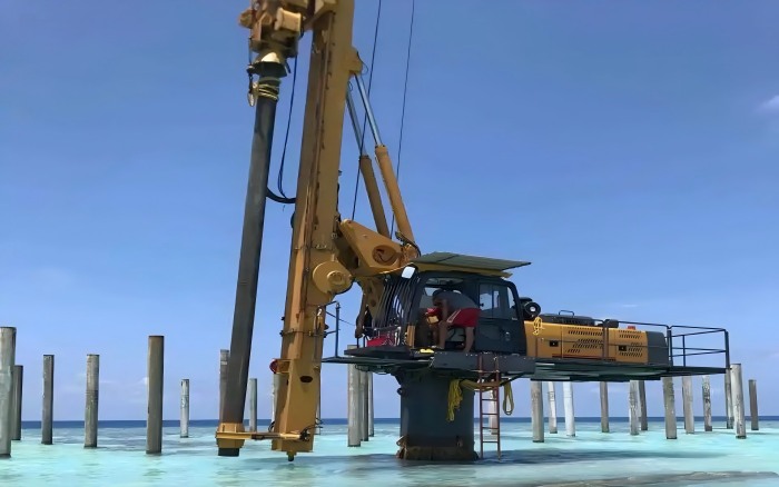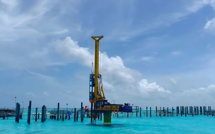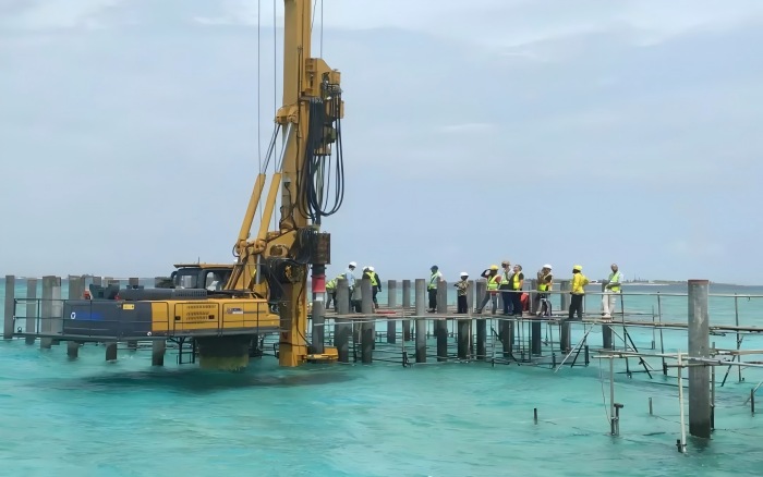 本次施工项目地质条件复杂,表层为松散砂质土,下层为密实珊瑚岩层,对桩基施工的精度与设备性能提出了严峻挑战 蓝莓TV。