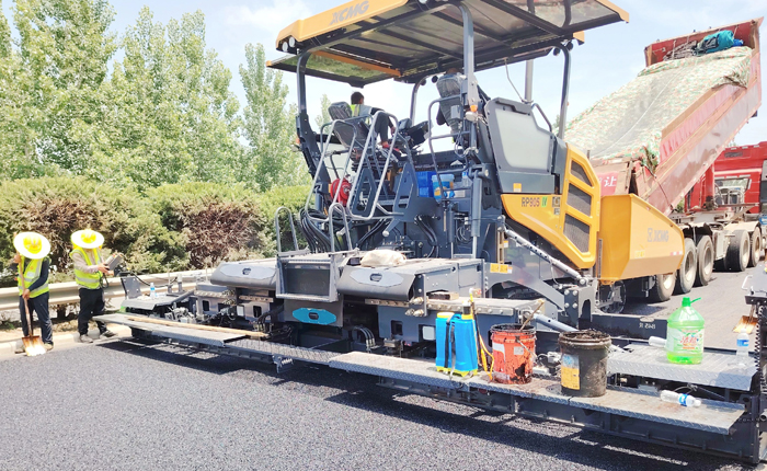 RP905这款摊铺机在高速施工中非常省心,稳定性比较好,摊铺平整度高,水稳,沥青都能干,山区弯道也不用频繁调平,智能找平系统自动跟坡,能满足两到三车道的一次性摊铺 蓝莓TV高清播放,现在我们标段 4 台摊铺机全换成徐工RP905了。
