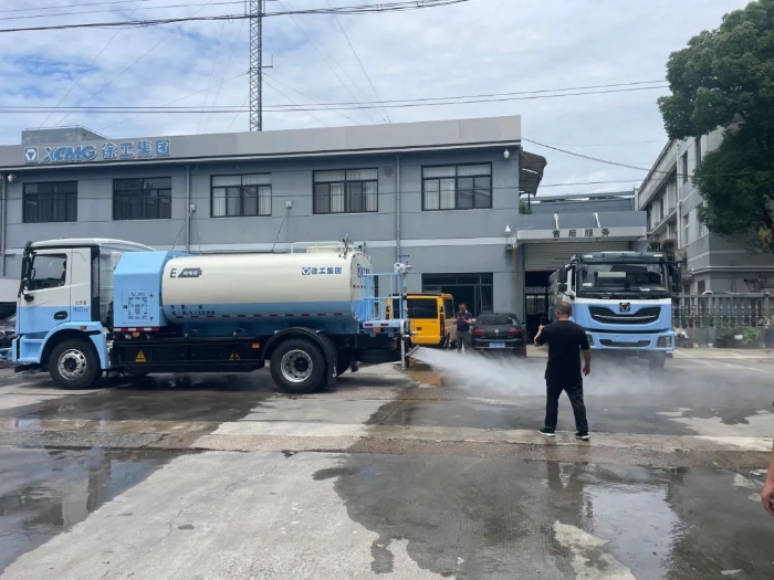 活动现场,徐工纯电动高压清洗车与纯电动扫路车协同作业,成为焦点 蓝莓TV,纯电动高压清洗车宛如一位精准高效的“清洁能手”,凭借大于8Mpa的高压水泵及24m的对冲清洗宽度,对道路进行冲洗,无论是顽固的油污,泥沙,还是藏匿在缝隙中的灰尘,都能被迅速冲刷干净。