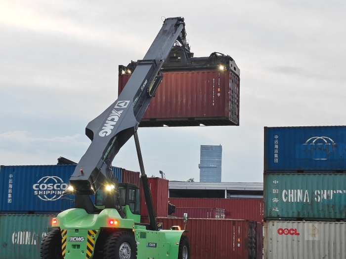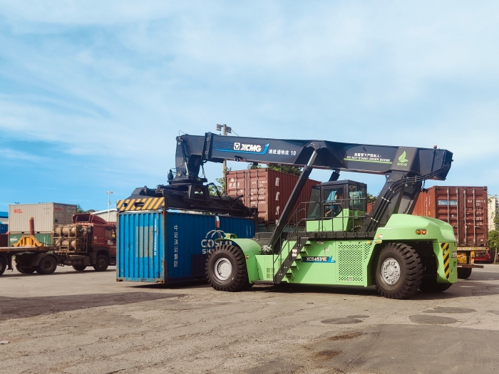 专为港口高强度作业场景深度定制的徐工XCS4531E5纯电动正面吊,近日投入集装箱堆场试运行,设备在高效完成集装箱转运测试后,其卓越性能赢得了客户技术团队的高度赞誉 蓝莓TV视频资源。