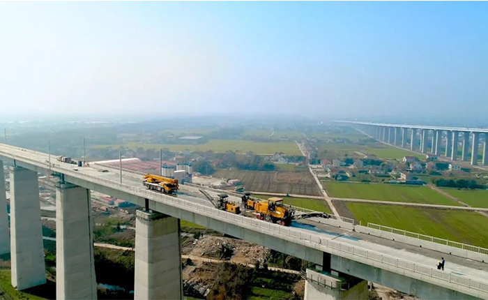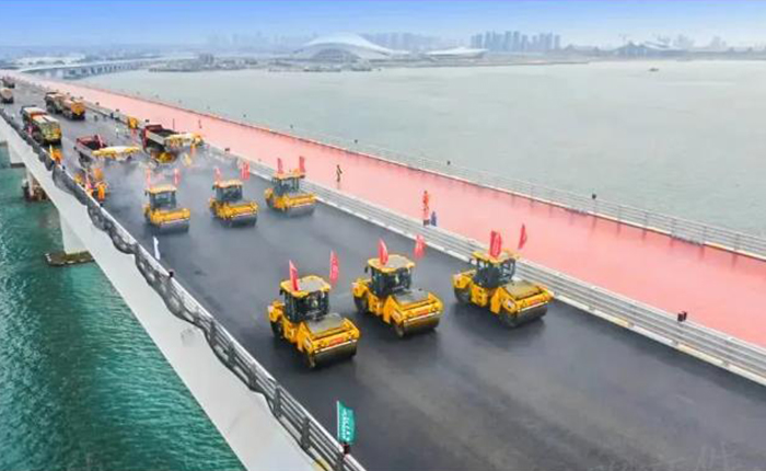 通过毫米级精度控制技术,实现了复杂桥区多场景施工的高效协同,有效提升了桥面平整度与施工效率,确保了全球最大跨度斜拉桥的铺装质量 蓝莓TV。