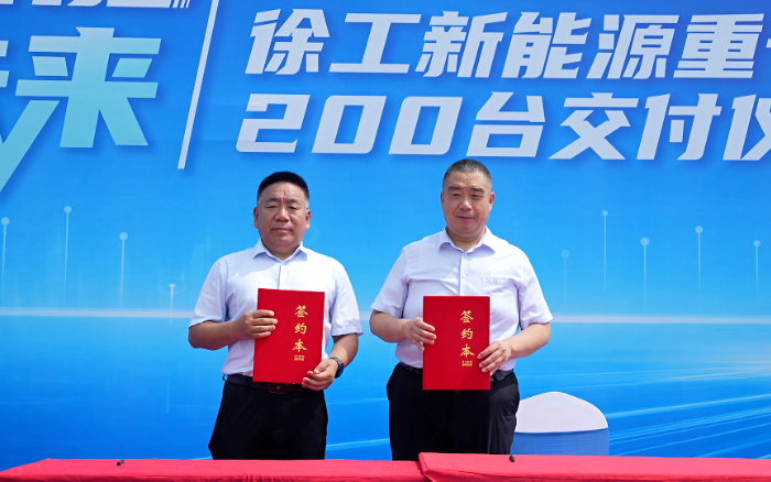 近日,200台徐工新能源重卡在华北区域火速集结,交付用户 蓝莓TV,奔赴当地砂石运输和城市建设一线。