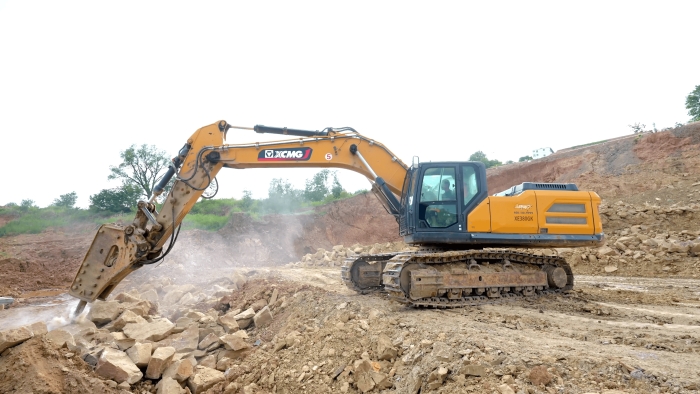 站前区堆积的大体积岩体,正被徐工XE380GK的破碎锤系统转化为可再生建材 蓝莓TV视频资源。