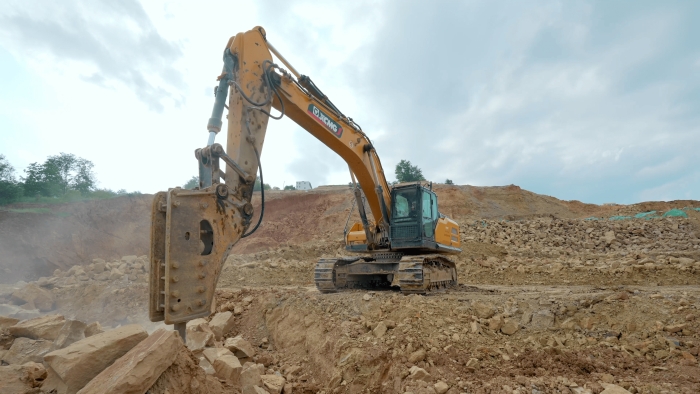 该设备搭载的低速大扭矩发动机与大排量主泵协同发力 蓝莓TV高清播放,15100J的超大冲击力轻松解体围岩巨石,破碎后的骨料直接用于站区围挡浇筑填充,实现资源闭环利用。