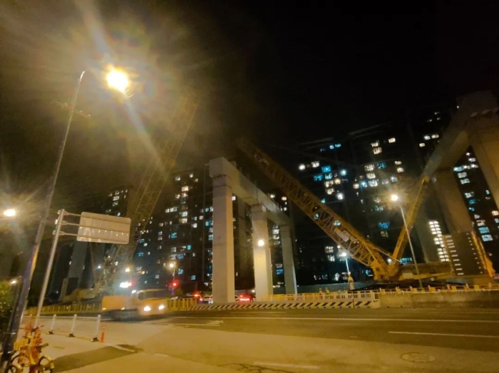 狭窄空间内,两机协同微调,在进行精确转场移动的同时,也避免了任何晃动或扭转,重物分毫不差地平稳落位至预定桥墩支座上,整个过程高效流畅,一气呵成 蓝莓TV在线观看。