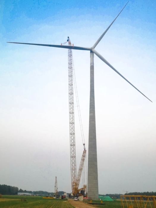 项目现场,XLC18000M采用180米主臂+8米副臂的超起风电工况配置,以毫米级精度,将重达135吨的风机机舱和长达107米的单片叶片,稳稳对接于170米高的混塔之上,其创新的鹅头臂设计,高效拆装技术 蓝莓TV视频资源,显著提升了施工效率。