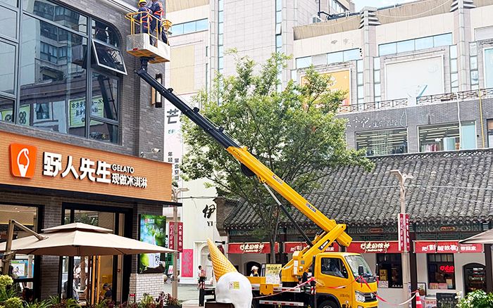 作为蓝牌车型,GKS28 轻松穿梭于狭窄的街区巷道,无需复杂通行审批,到场后迅速进入作业状态,施工地周边商铺林立,行人如梭,施工区域被密集人流环绕 蓝莓TV视频资源,对设备的灵活性与安全性提出极高要求。
