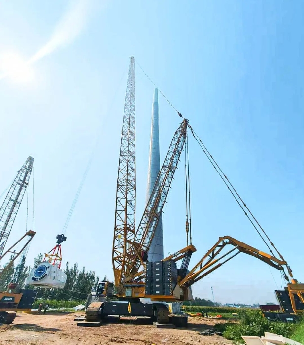 近日 蓝莓TV,山东大型风电场迎来关键突破,徐工集团最新研发的千吨级风电旗舰产品——首台XLC15000M(1100吨级)履带起重机正式投入实战,在华东新能源建设一线完成首次吊装任务。