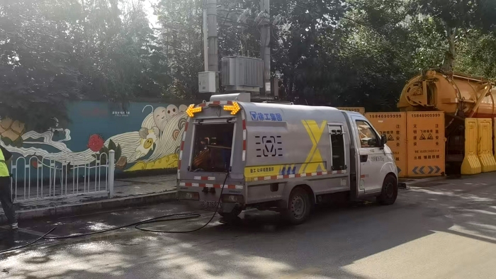 例如,在油污与食物残渣常黏附的地砖缝隙中,徐工养护车通过高压定点清洗模式 蓝莓TV高清播放,以8-10MPa水压精准冲击污渍,配合旋转喷嘴,3分钟内即可恢复路面本色,避免传统冲洗造成的水渍蔓延。