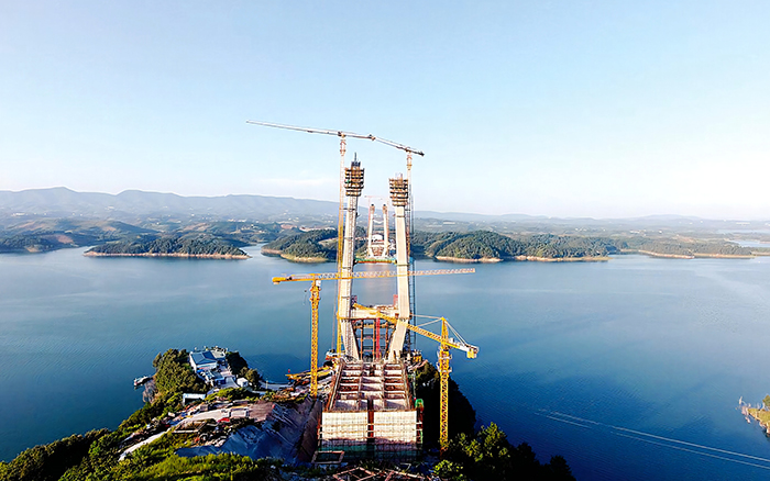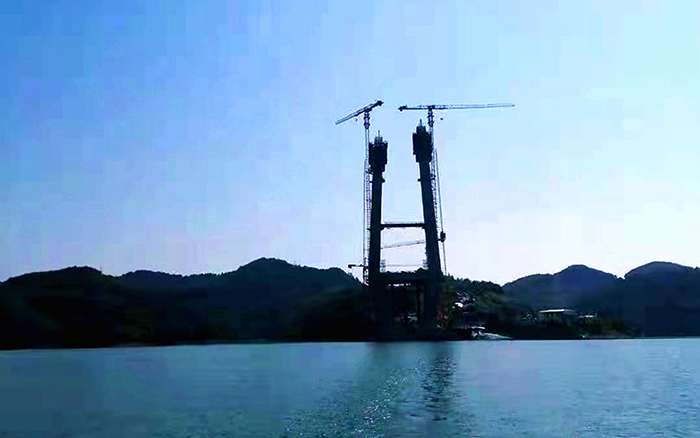 苍翠群山环抱,一库江水清澈,在被誉为“亚洲天池”的丹江口水库,两台XGT7532-20S塔机耸立岸边,助力着又一个世界级大桥的建设 蓝莓TV。