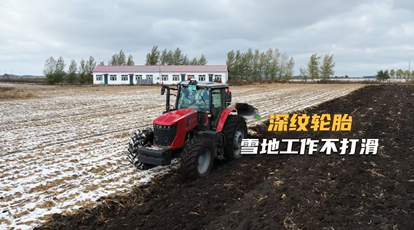 同时 在线视频平台,超大转向角设计让拖拉机在积雪地块中灵活穿梭.