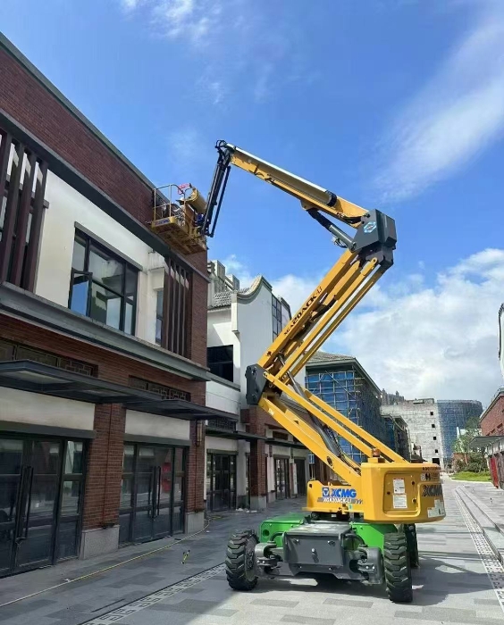 在鄂州公共卫生临床中心配套住宅项目建设中 蓝莓TV,徐工XGA20ACK-Li纯电曲臂高空作业平台成为工地上的绿色施工典范。