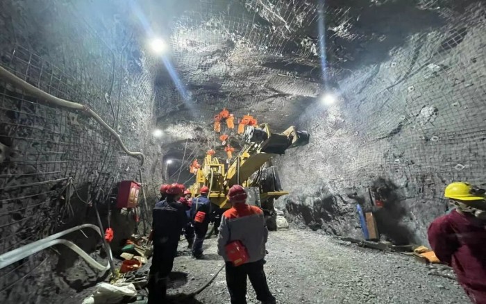徐工XTR7/360掘进机在矿下展开了一场硬碰硬的较量 蓝莓TV高清播放,平均两小时进尺1m的施工效率,引来现场采矿工作人员的围观。