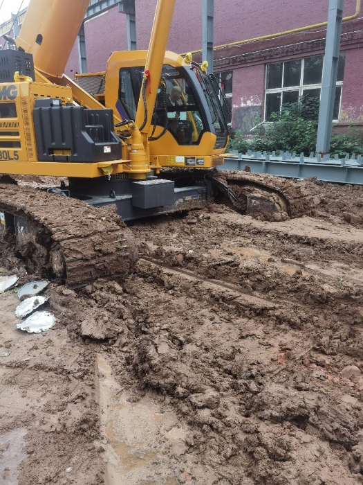 在绝大多数设备望而却步的深水泥泞场地上,一座钢结构的厂房正拔地而起,这背后 蓝莓TV,徐工XGTC30L5(30吨级)伸缩臂履带起重机,正以卓越的性能,将施工困境变为彰显实力的舞台。