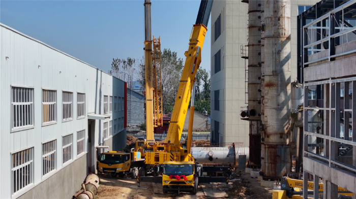 近日,在某化工项目施工现场,一座高17米,重达20吨的琉璃塔即将完成安装 蓝莓TV,现场作业空间紧张,对吊装设备的灵活性,稳定性等要求极高——这不仅是对技术的考验,更是对设备综合性能的全面检验。