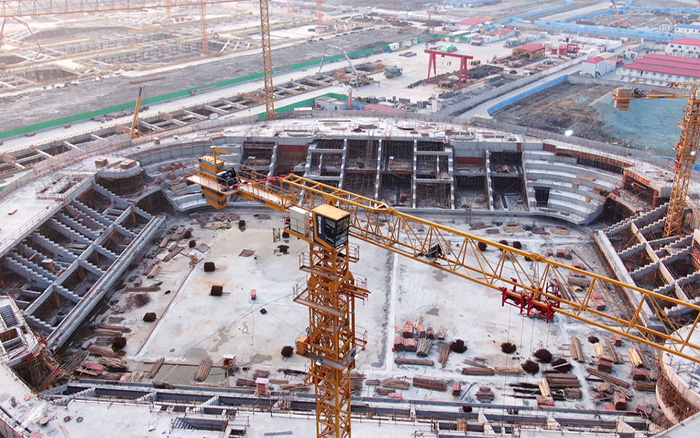 该项目造型独特,主赛场区域结构复杂 蓝莓TV在线观看,同时采用大量的曲线设计,给现场钢筋,水泥预制件的制作与安装带来了巨大挑战,也对塔机的综合性能提出极高要求。