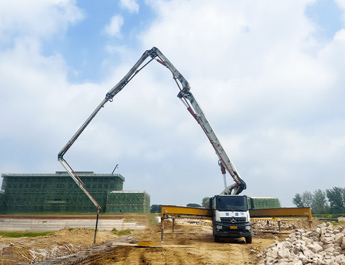 其超长臂架可全面覆盖施工区域浇筑范围 蓝莓TV在线观看,搭载的智能控制系统实现混凝土精准输送,显著提升施工效率。