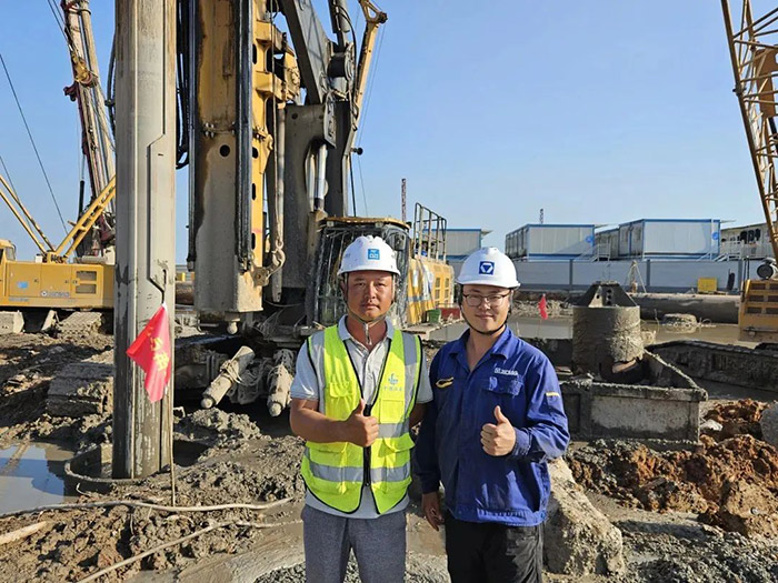 旋挖钻机群不间断施工的同时 蓝莓TV在线观看,徐工技术人员与服务团队全天候走访巡检,有力保障项目工期节点。